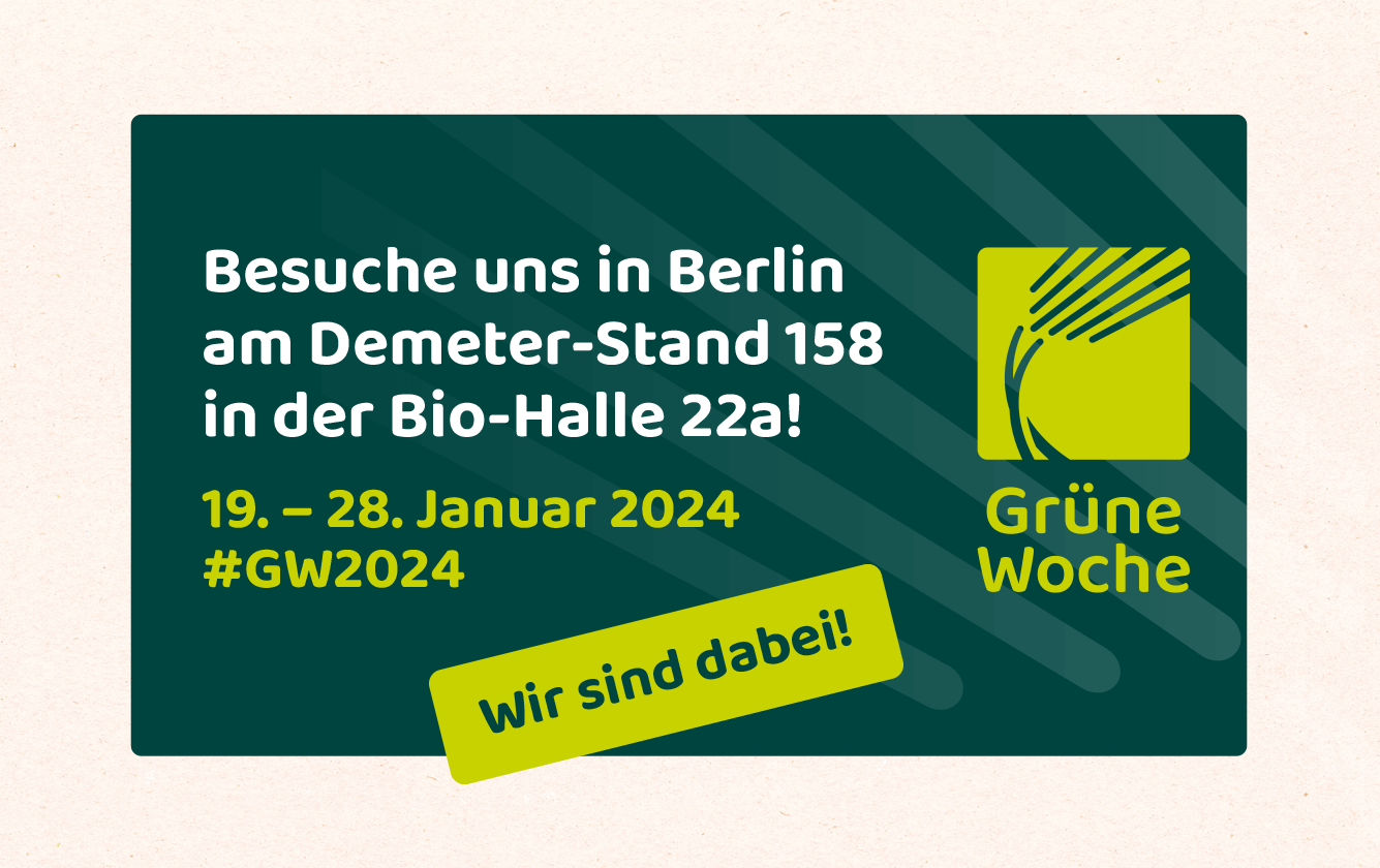 Wir freuen uns auf deinen Besuch am Demeter-Stand 158 in der Bio-Halle 22a!