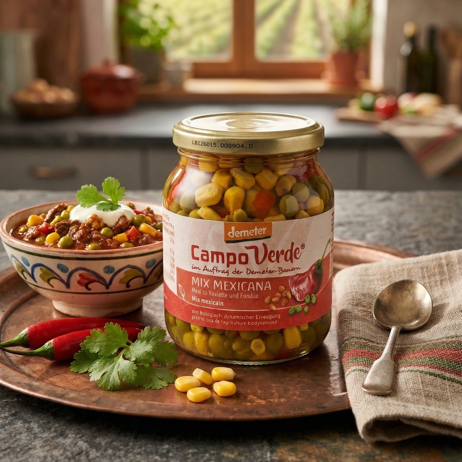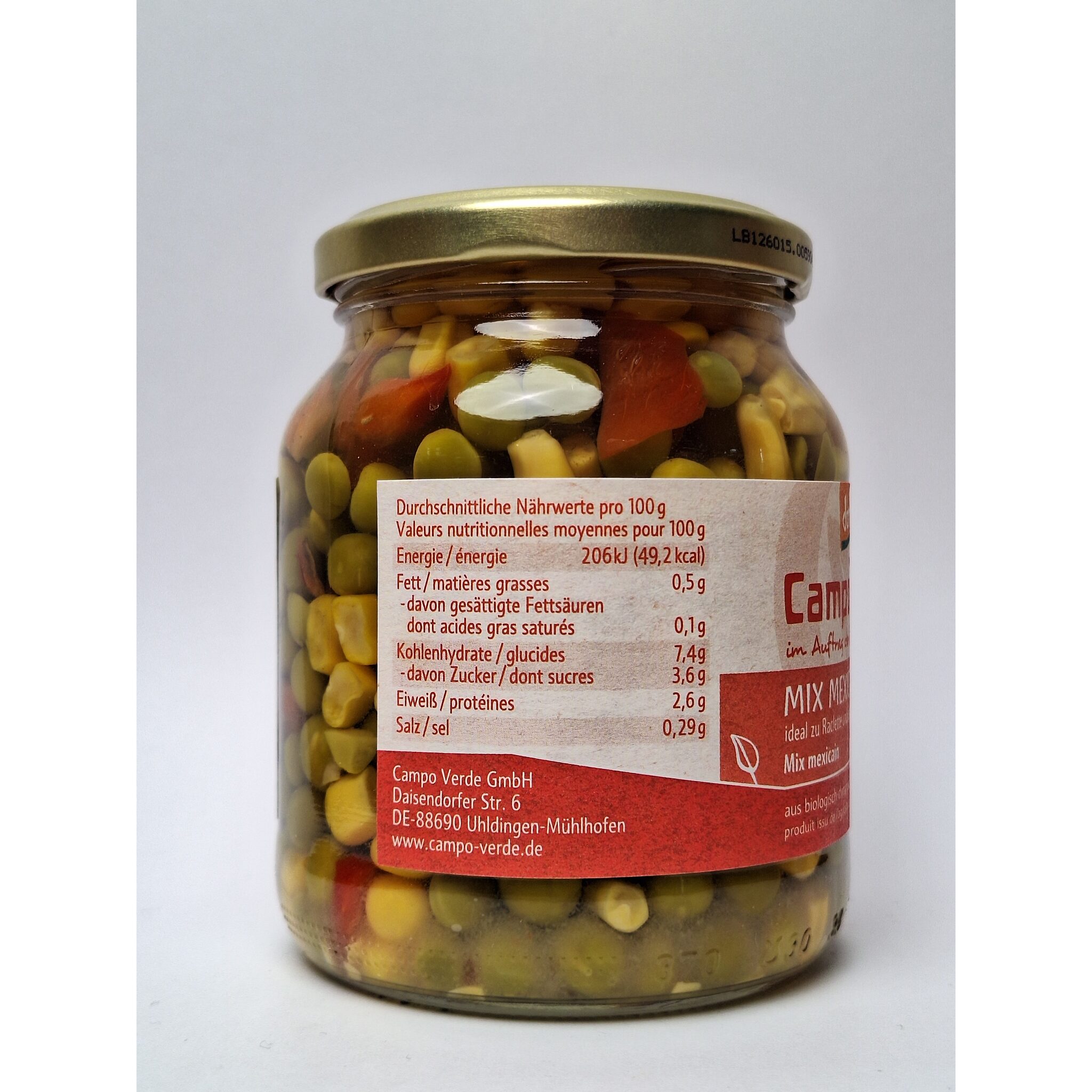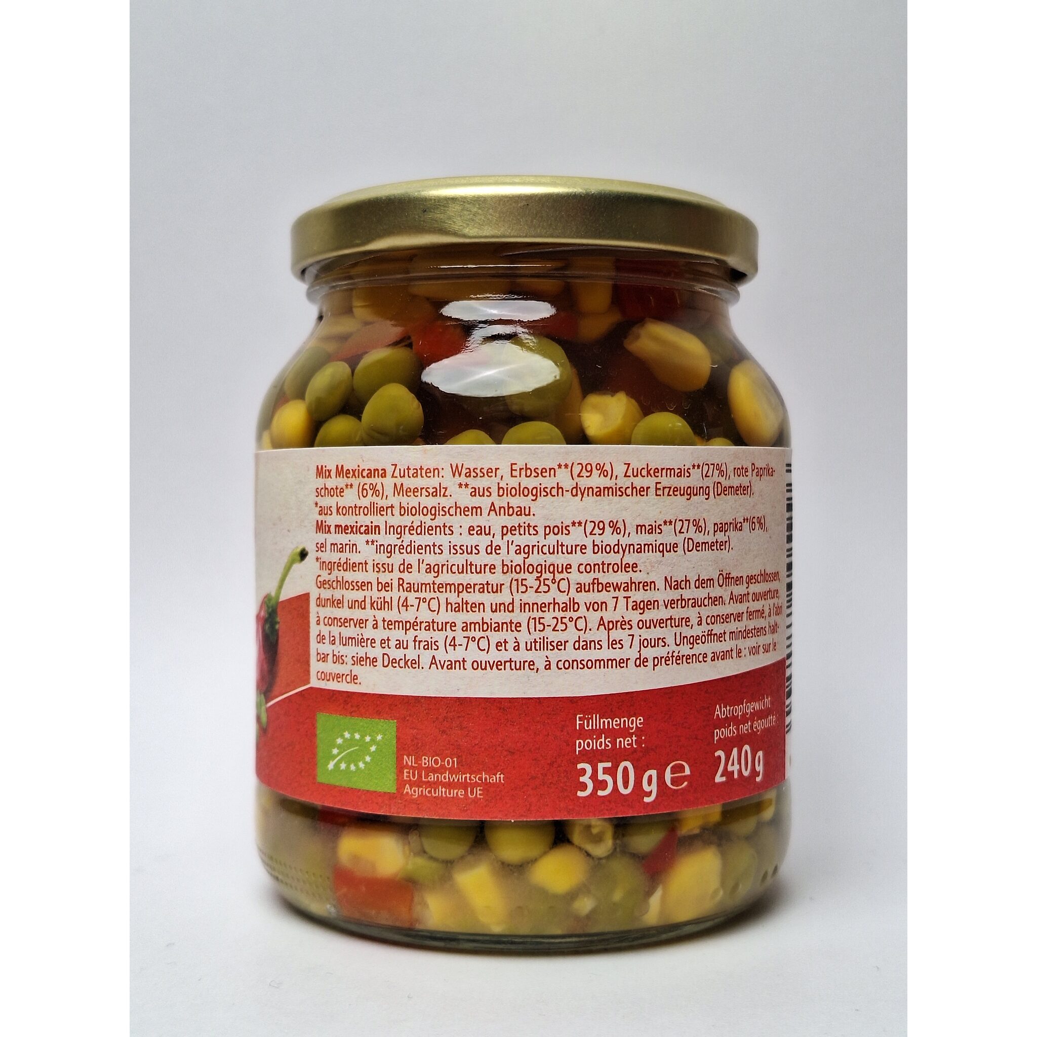 Wasser, Erbsen** (32 %), Zuckermais** (25,2 %), rote Paprikaschote** (5,5 %), Agavendicksaft*, Meersalz.
