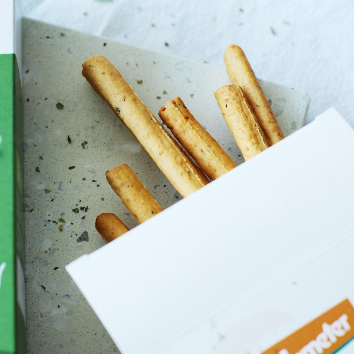 Weizenmehl Type 812** (76,5 %), Emmentaler** (7,7 %), Hefe*, Olivenöl** (3,8 %), Hartkäse** (1,9 %), Tomatenpulver*, Gerstenmalzextrakt**, getrocknete Gewürze* (Zwiebelpulver*, Oregano*, Basilikum*, Paprikapulver*, Knoblauchpulver*)